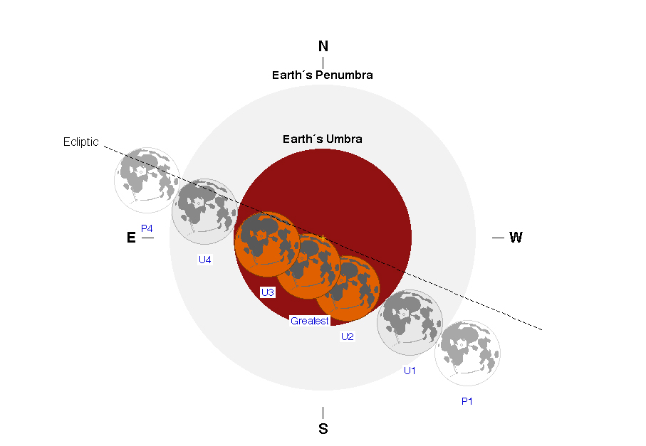 زمان ورود ماه به سایه زمین ( تماس یکم) : ساعت 19 و 57 دقیقه و 02 ثانیه