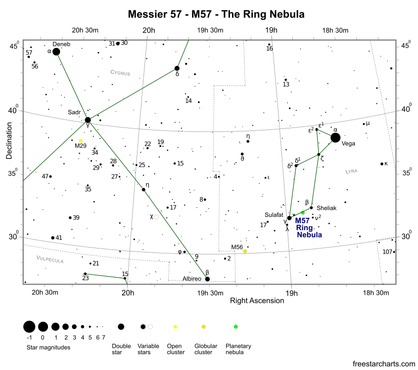 ابرگونه حلقه که در شماره ۵۷ در فهرست شارل مسیه نام‌گذاری شده است، یک ستاره‌ای نچندان بزرگ بوده که به فرجام خود رسیده است. ستارگان کوچک و میانه از دیدگاه جرم همچون خورشید، پس از کاهش چشمگیر هیدروژن مرکز، به پایان عمر خود می‌رسند. آنگاه دچار فروریزش گرانشی شده، همجوشی هلیوم به دیگر مواد در آنها به کندی آغاز می‌گردد. بنابراین بخشی از جرم ستاره از پیرامون ستاره پراکنده می‌شود. این ابر گاز و غبار پراکنده شده، در بیشتر ستارگان ساختاری متقارن دارند.  بنابراین از درون تلسکوپ همچون یک سیاره دیده می‌شوند. از این روی بدان ابرگونه (به تازی سحابی) سیاره‌نما گفته می‌شود. آنچه از جرم ستاره بر جای می‌ماند، در میانه ابرگونه فشرده می‌شود، که به آن کوتوله سفید می‌گویند. در نگاره نخست که اندکی بزرگنمایی شده، ابرگونه حلقه و کوتوله سفید را در میان آن می‌توانید ببینید. این سرانجام خورشید در پنج تا شش میلیارد سال دیگر خواهد بود. در نگاره دوم اندازه ظاهری این ابرگونه را در سنجش با میدان دید تلسکوپ اصلی رسدخانه (رصدخانه) دانشگاه کاشان در نیاسر می‌توانید ببینید. به سادگی می‌توان دید که این ابرگونه اندازه ظاهری بزرگی ندارد. در نگاره سوم جایگاه این ابرگونه را در پیکر آسمانی چنگ (به تازی صورت فلکی شلیاق) می‌توانید ببینید. پیکر آسمانی چنگ در کنار پیکر آسمانی قو جای گرفته و بخشی از مثلث تابستانی است، که هنوز در ساعت‌های نخستین شب‌های پاییزی می‌توان در آسمان یافت. تصویربرداری توسط ایرج صفایی با تلسکوپ اصلی رسدخانه دانشگاه کاشان و دوربین Canon 5D  انجام شده است.