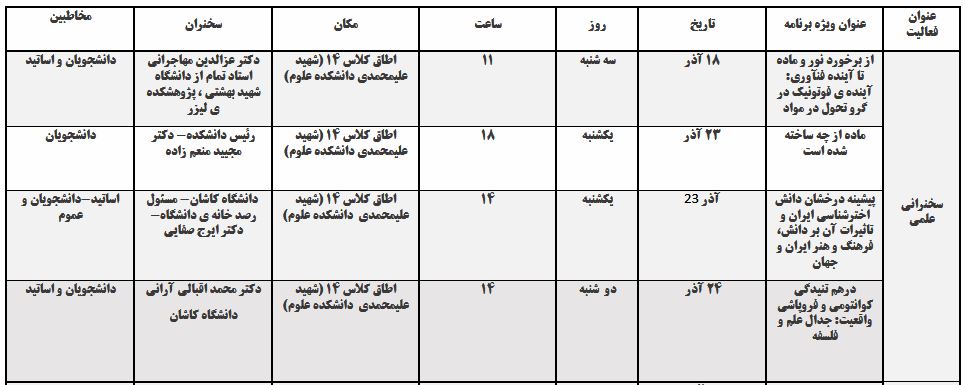 کلمات کليدي : سخنرانی علمی هفته پژوهش 1404 دانشکده فیزیک دانشگاه کاشان